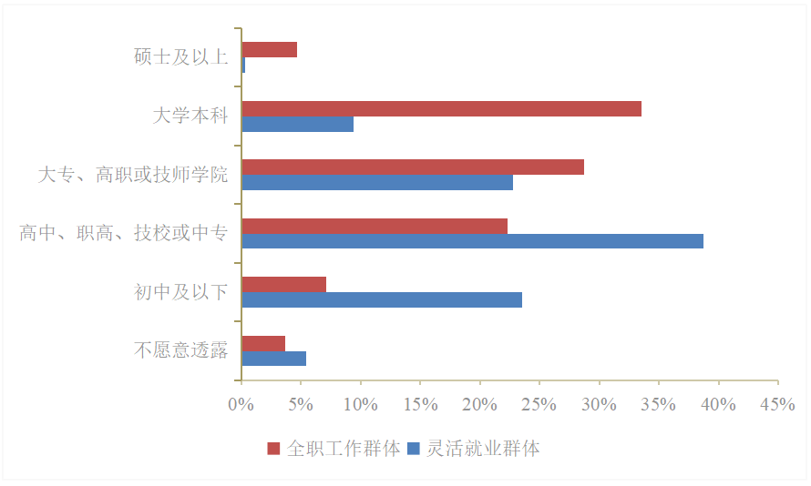 圖 2 平臺靈活就業(yè)與全職工作群體學歷分布